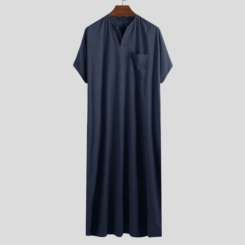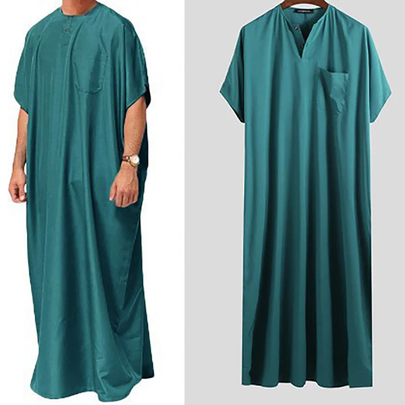 New Men's Muslim Middle Eastern Arab Dubai Dress Robe Short Sleeve Luxury Robe Pakistan Moroccan Muslim Men Clothing
