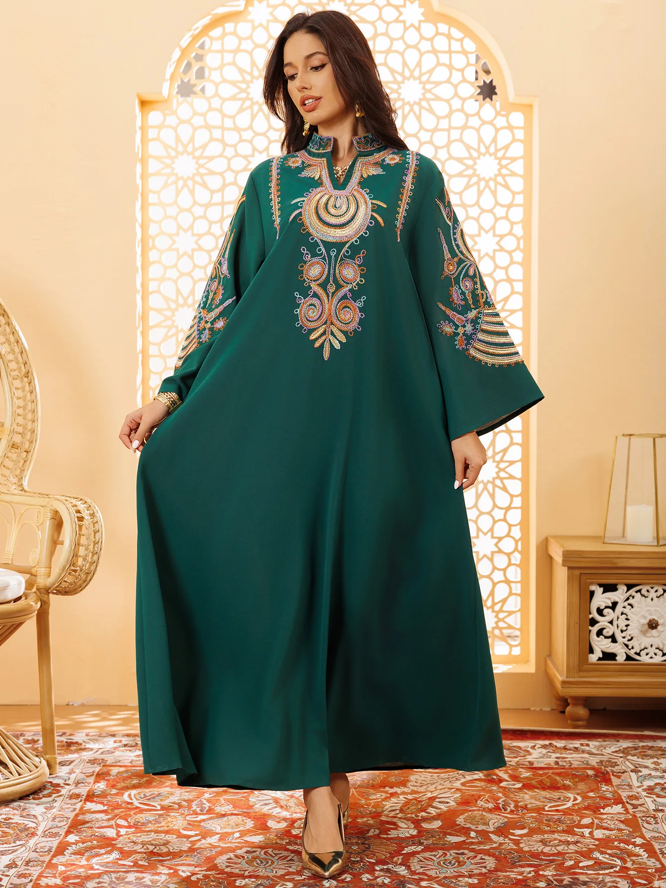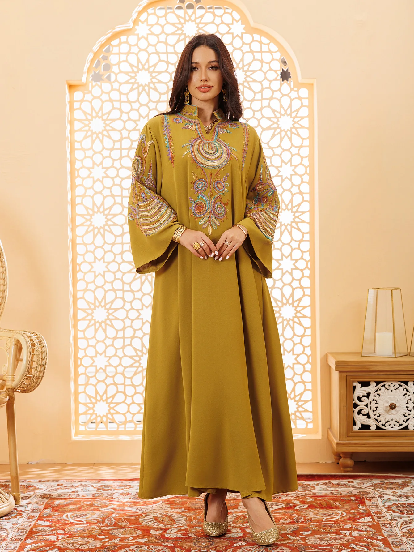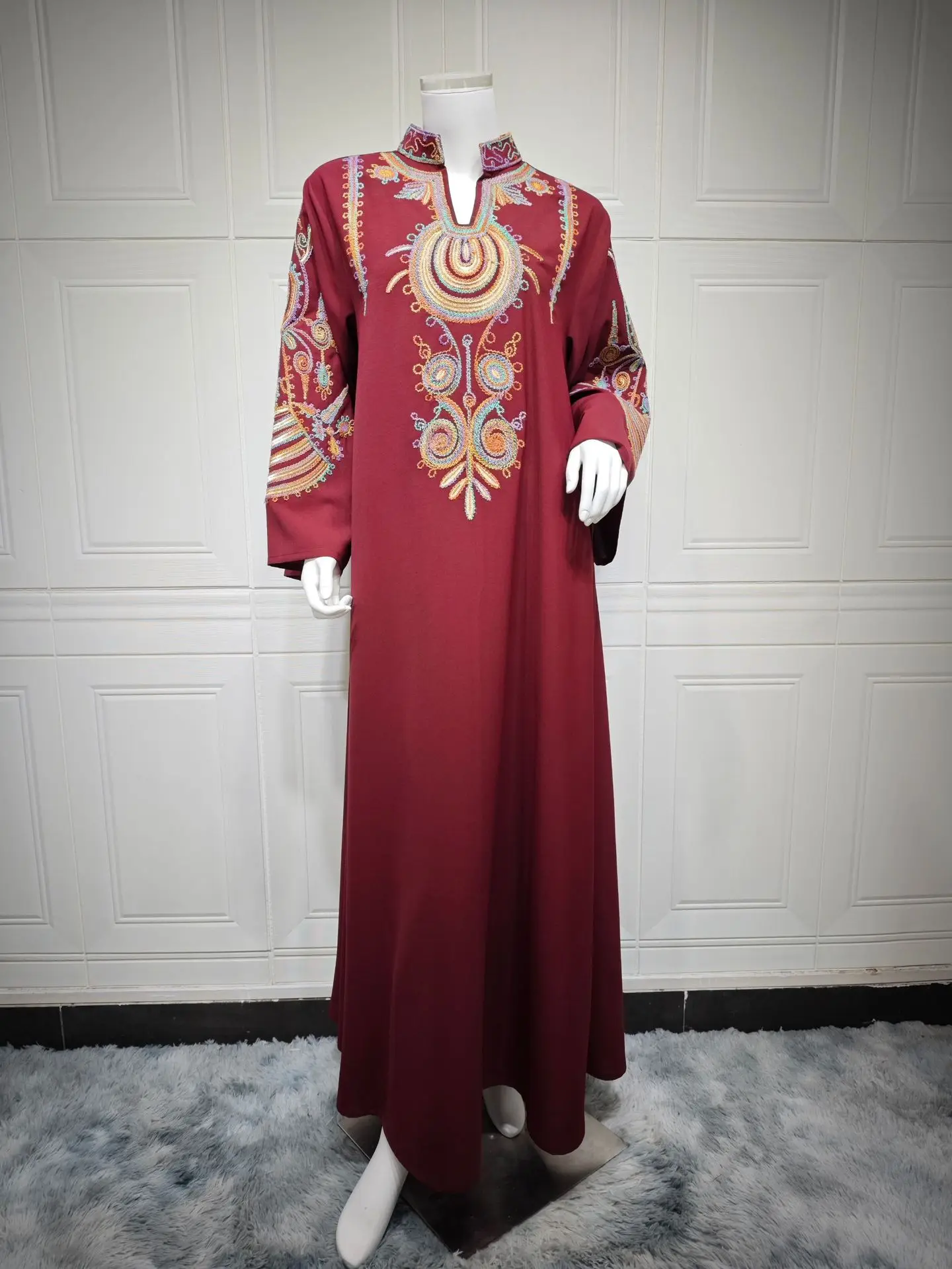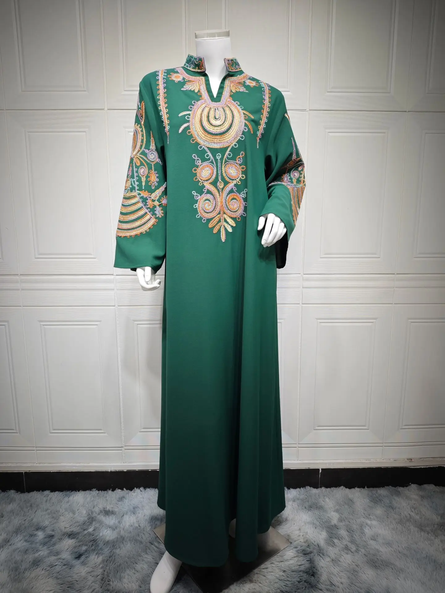 Rope Embroidered Long Sleeve Eid Islamic Robe Femme Evening Dress