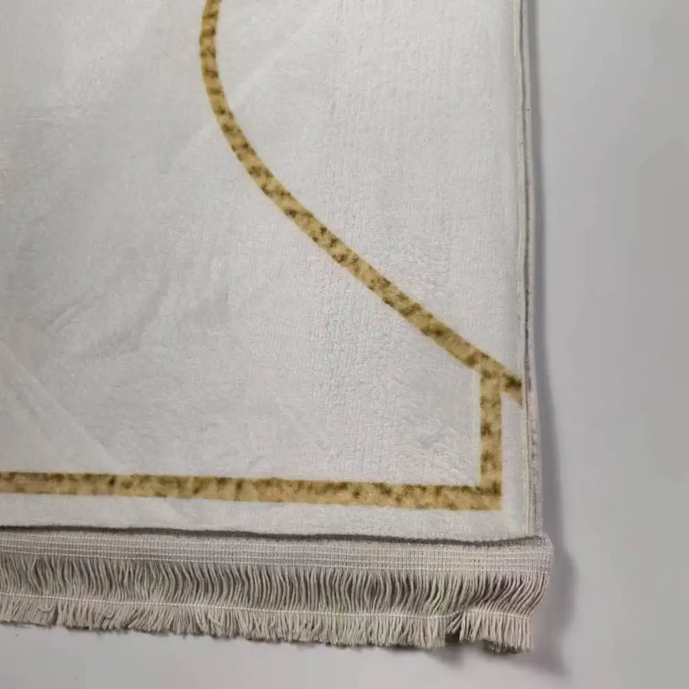 Elegant Detailing: Adorned with intricate golden line edges, this prayer mat exudes sophistication and grace. The clear and elegant patterns not only enhance its visual appeal but also symbolize reverence and devotion, elevating your prayer experience.
