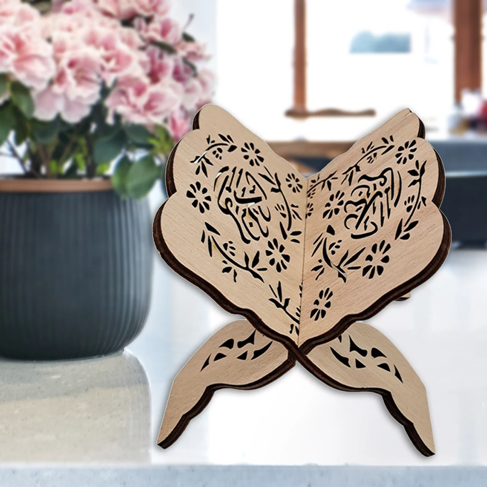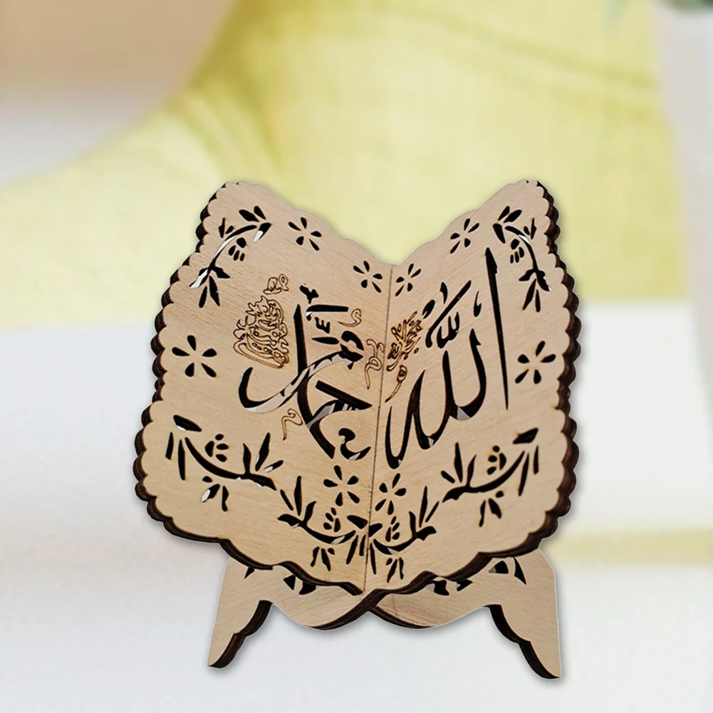 Islamic Eid Mubarak Bible Bookshelf Wooden Bookshelves Storage Rack Home Decor Prayer Quran Display Rack Holder Utility Organizer Shelves Cookbook Display Holder Rack for Living Room Bedroom for Gift