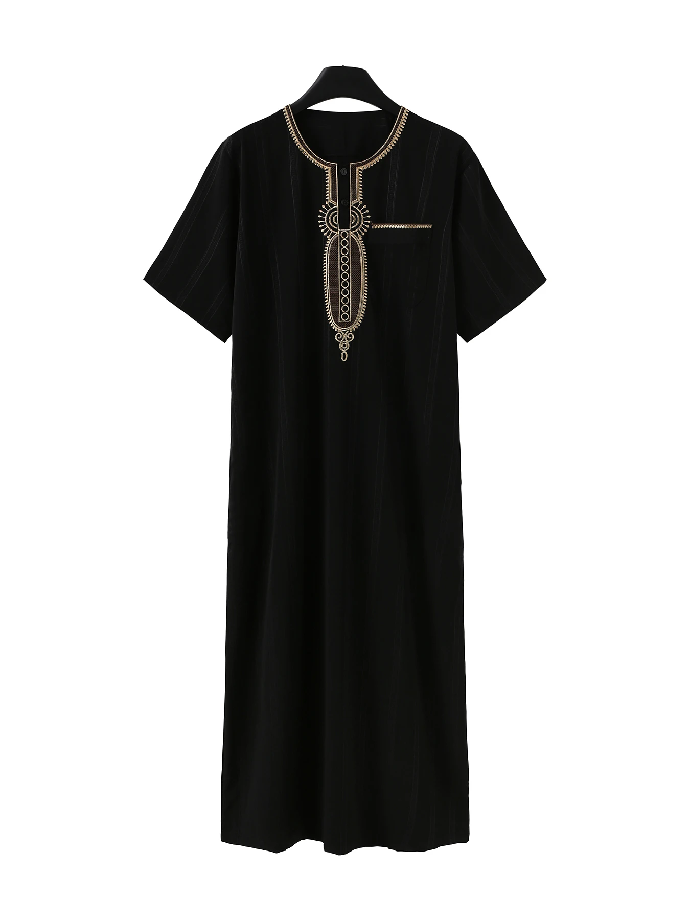 The Elegant and luxurious Thobe features a traditional Islamic loose design, with Short-sleeved ends and intricate embroidery, perfect for formal occasions.