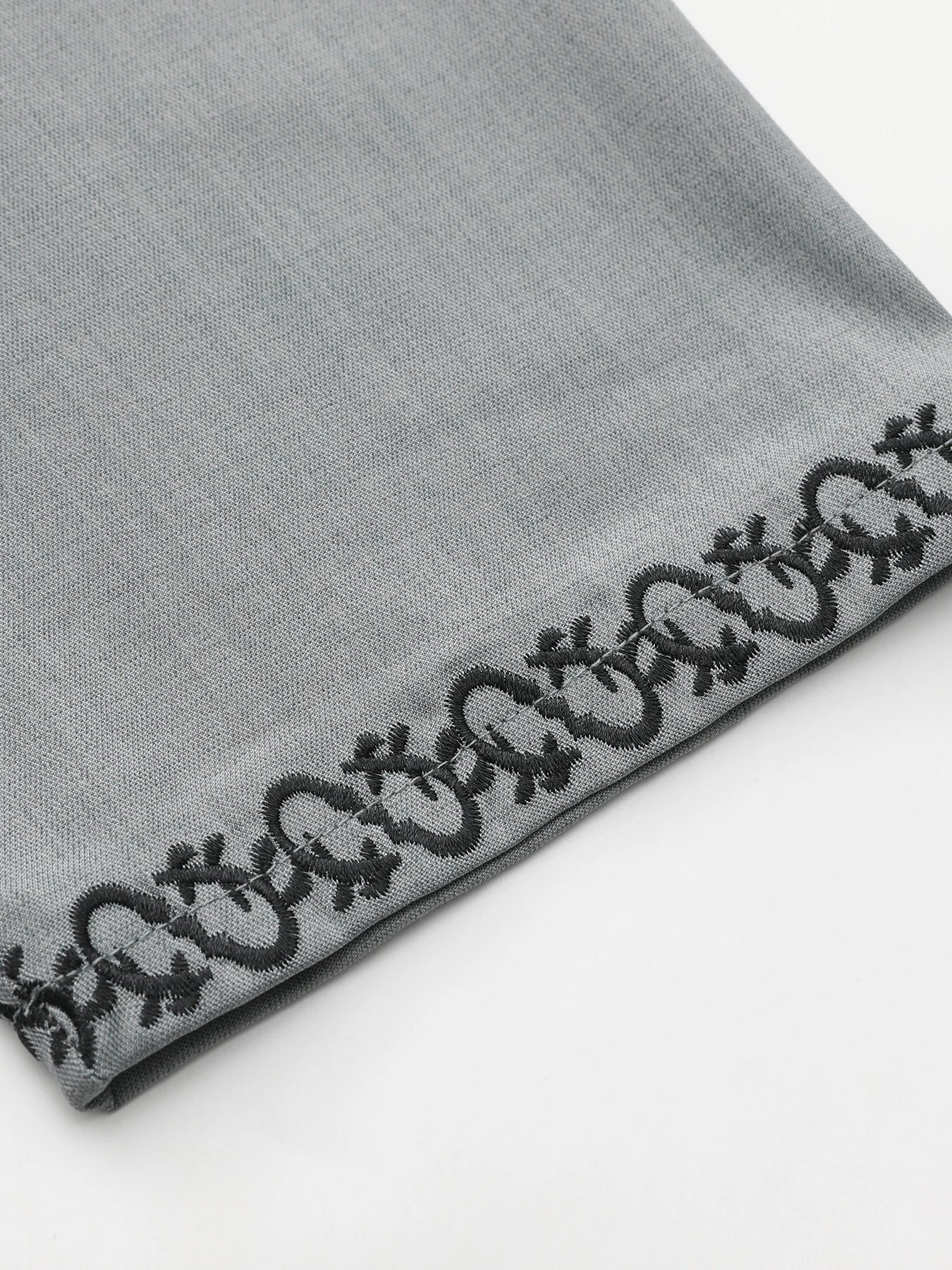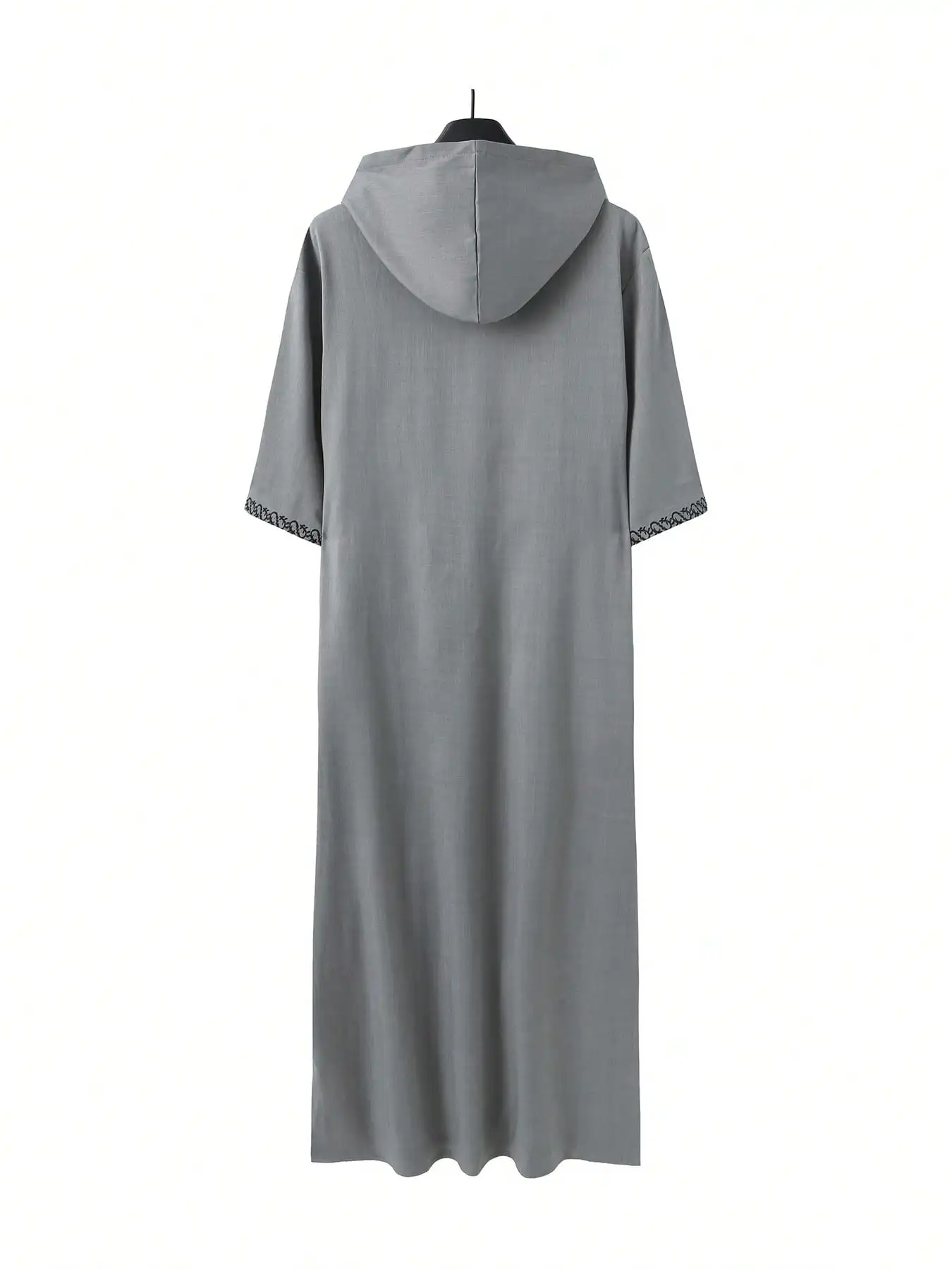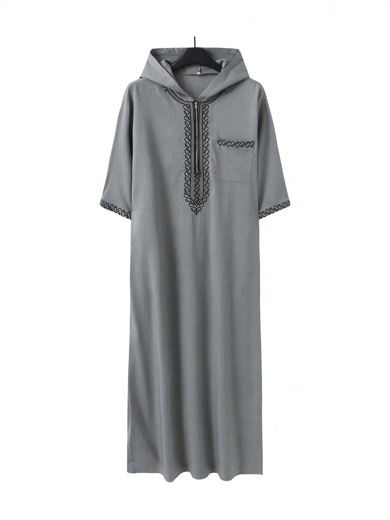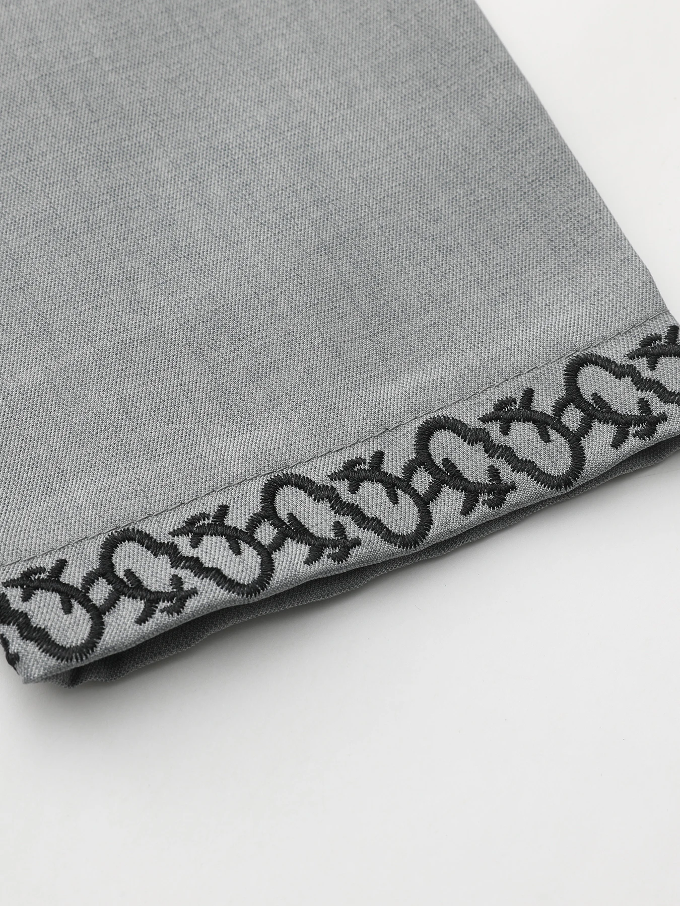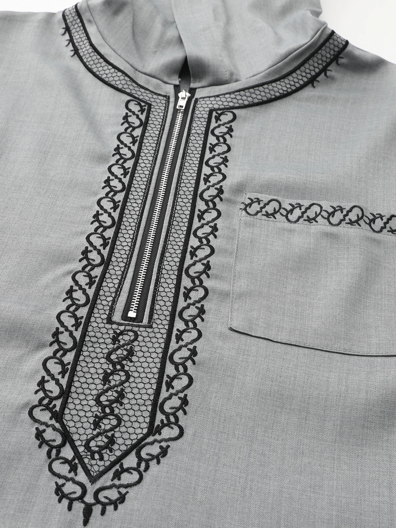 Celebrate your faith with the Tat-woven embroidery, a hallmark of Islamic arts seamlessly merging with the sleek thobe style.
